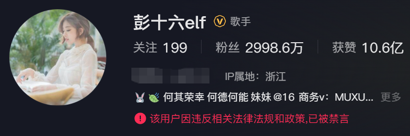 今天(1月14日),南都记者在相关平台看到,彭煊之账号因“该用户违反相关法律法规和政策”,已被禁言。