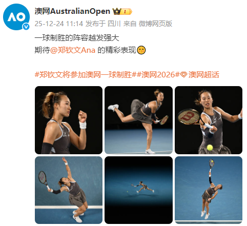 据此前报道,北京时间12月24日,澳网官方更新了参加明年年初“一球制胜大满贯”赛事的球员名单,郑钦文确认参加。