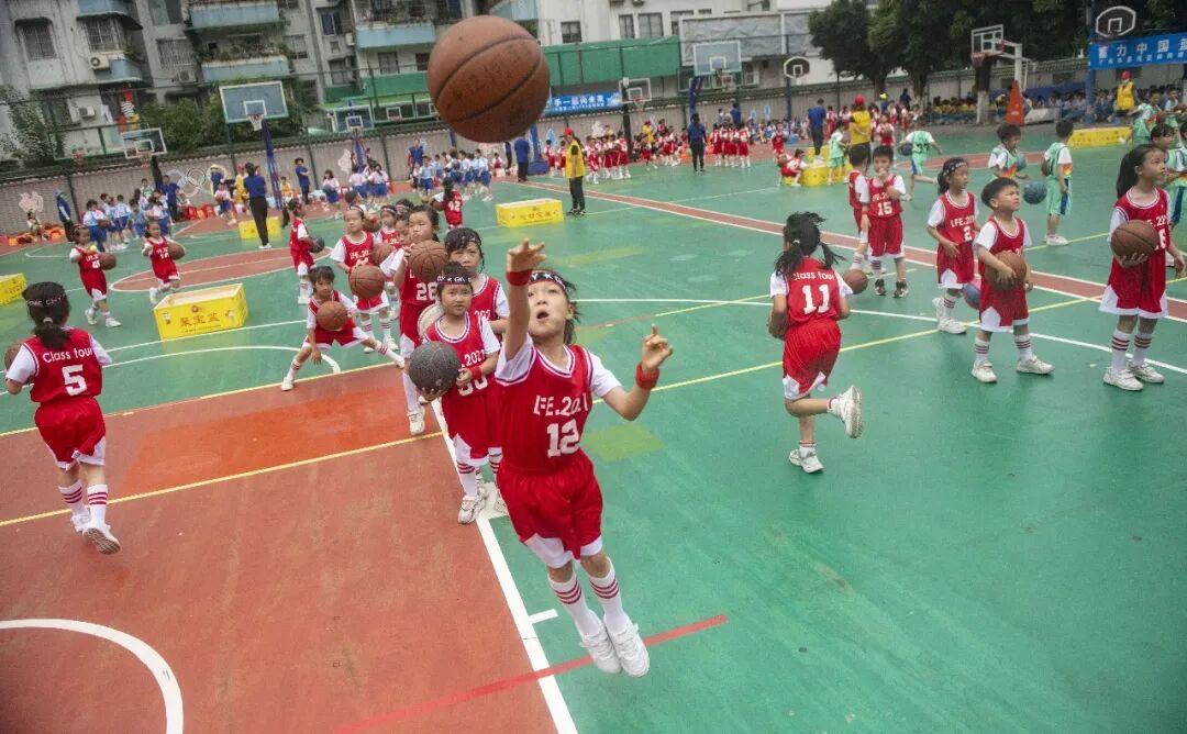 学生们在学校组织的篮球运动会上。(资料图/广州日报新花城记者:廖雪明)