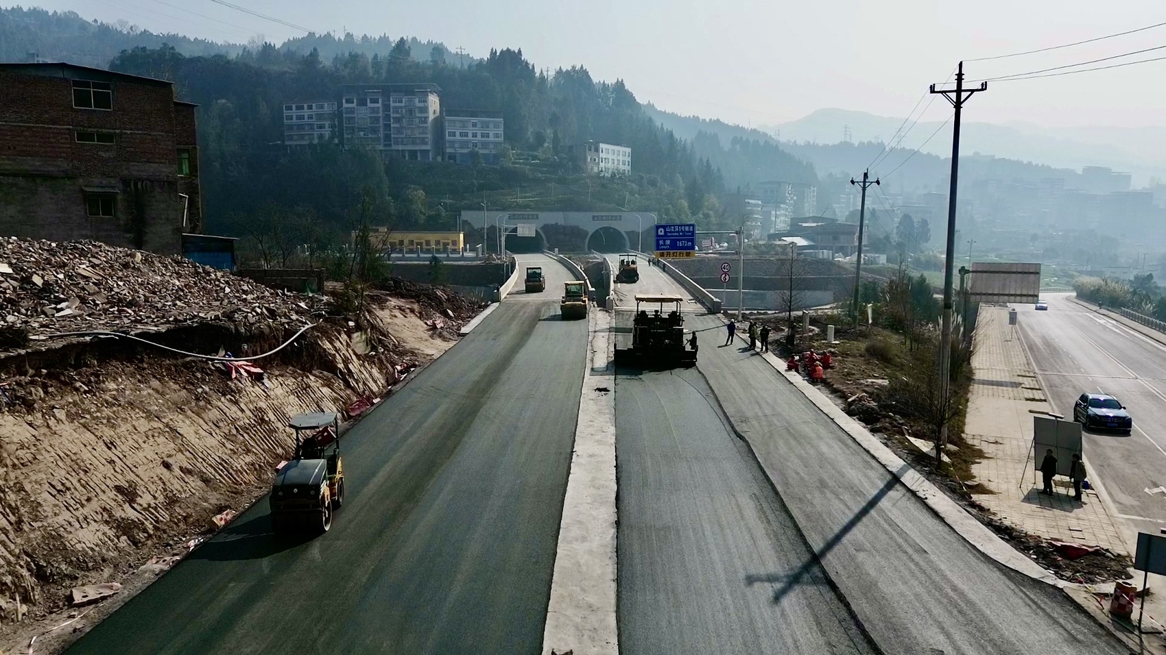 1月13日,巴中通江县省道204线山花顶隧道及引道工程项目施工现场一片繁忙景象。沥青摊铺机、压路机等大型机械协同作业,滚烫的沥青混合料被均匀摊铺、压实,一条平整黝黑的路面不断向前延伸,标志着该项目正式进入通车前的最后冲刺阶段。