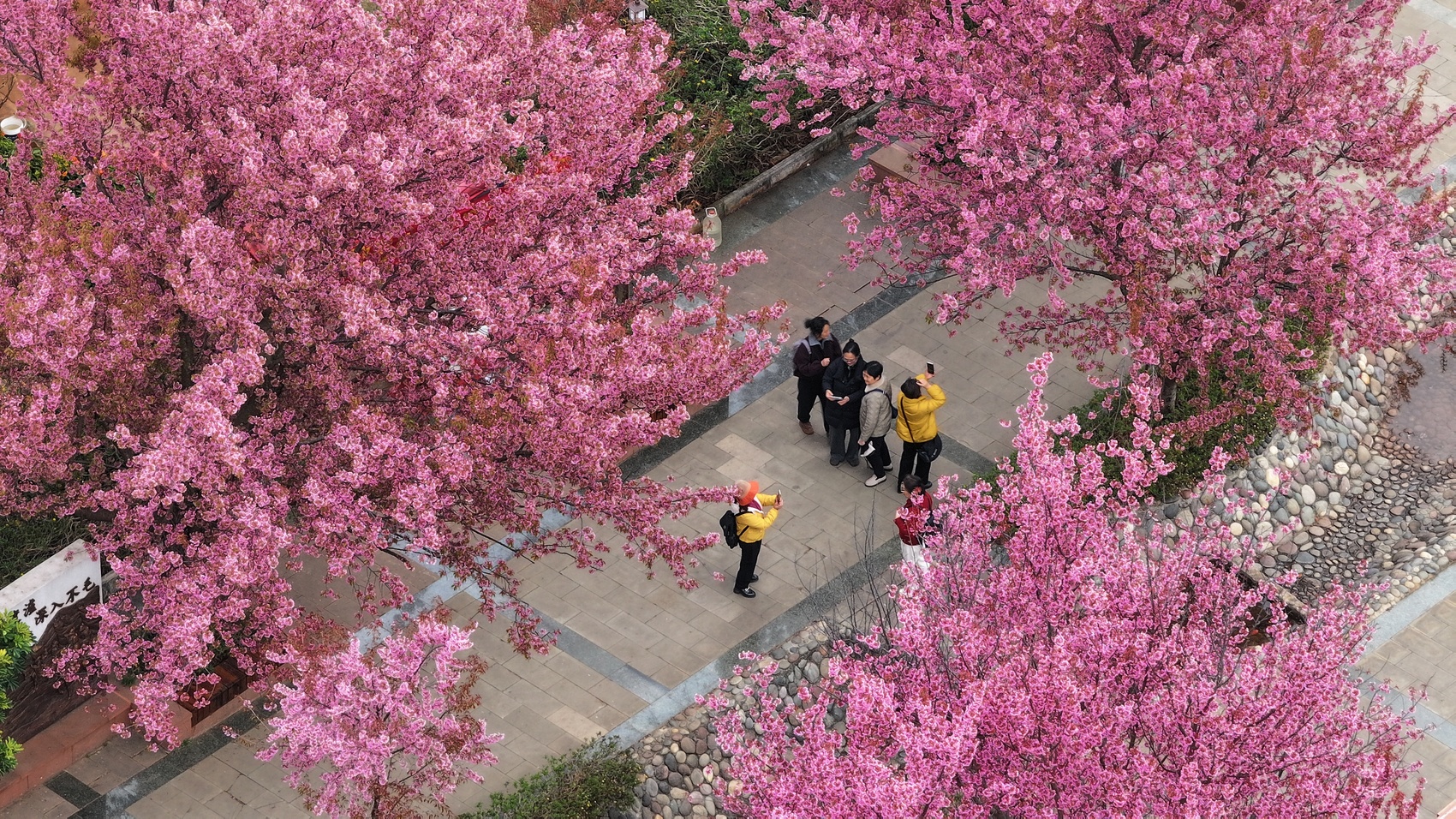 非遗小院里,羊皮鼓舞铿锵灵动;文化广场内,游客村民牵手欢跳;村史馆中,陈列的旧物件诉说古村过往……这个冬天,攀枝花市仁和区平地镇迤沙拉村的冬樱花开得格外繁盛,千年古村迎来粉色浪漫,吸引了五湖四海的旅客前来欢度元旦。