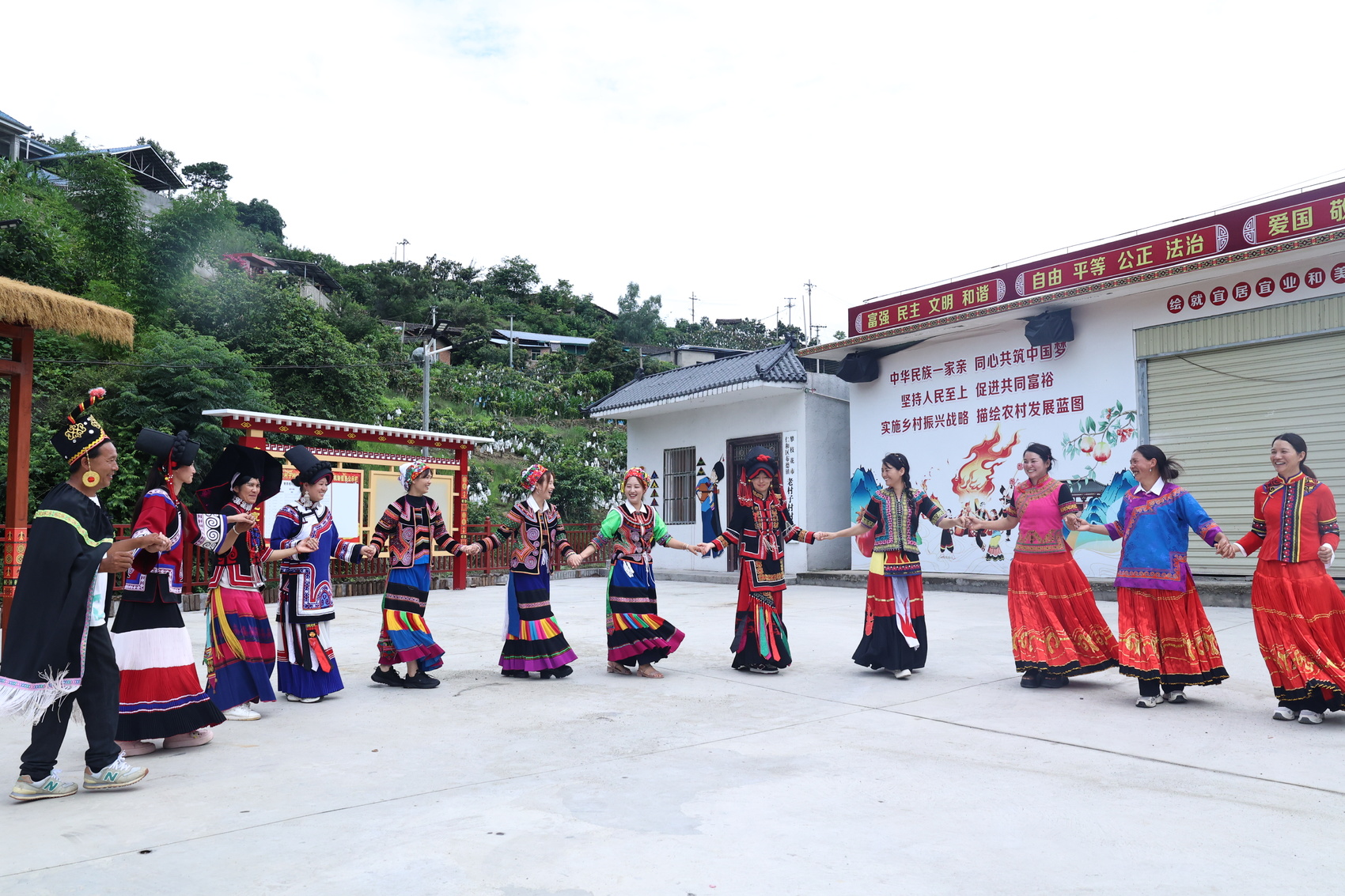 在迤沙拉村,村民农闲时换上演出服,每个人都是行走的“主演”,村支书变身文旅推荐官 ,带着村民用一部手机“出圈”。他们,让乡村热闹起来,为乡村振兴注入活力。融入民族风情与非遗资源的“姊妹节”“火把节”等文旅品牌,让游客从“旁观者”变为“体验者,为乡村振兴聚人气,添动能。