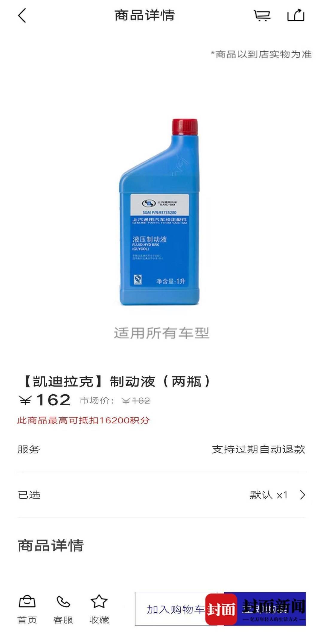 凯迪拉克App上制动液价格(受访者供图)