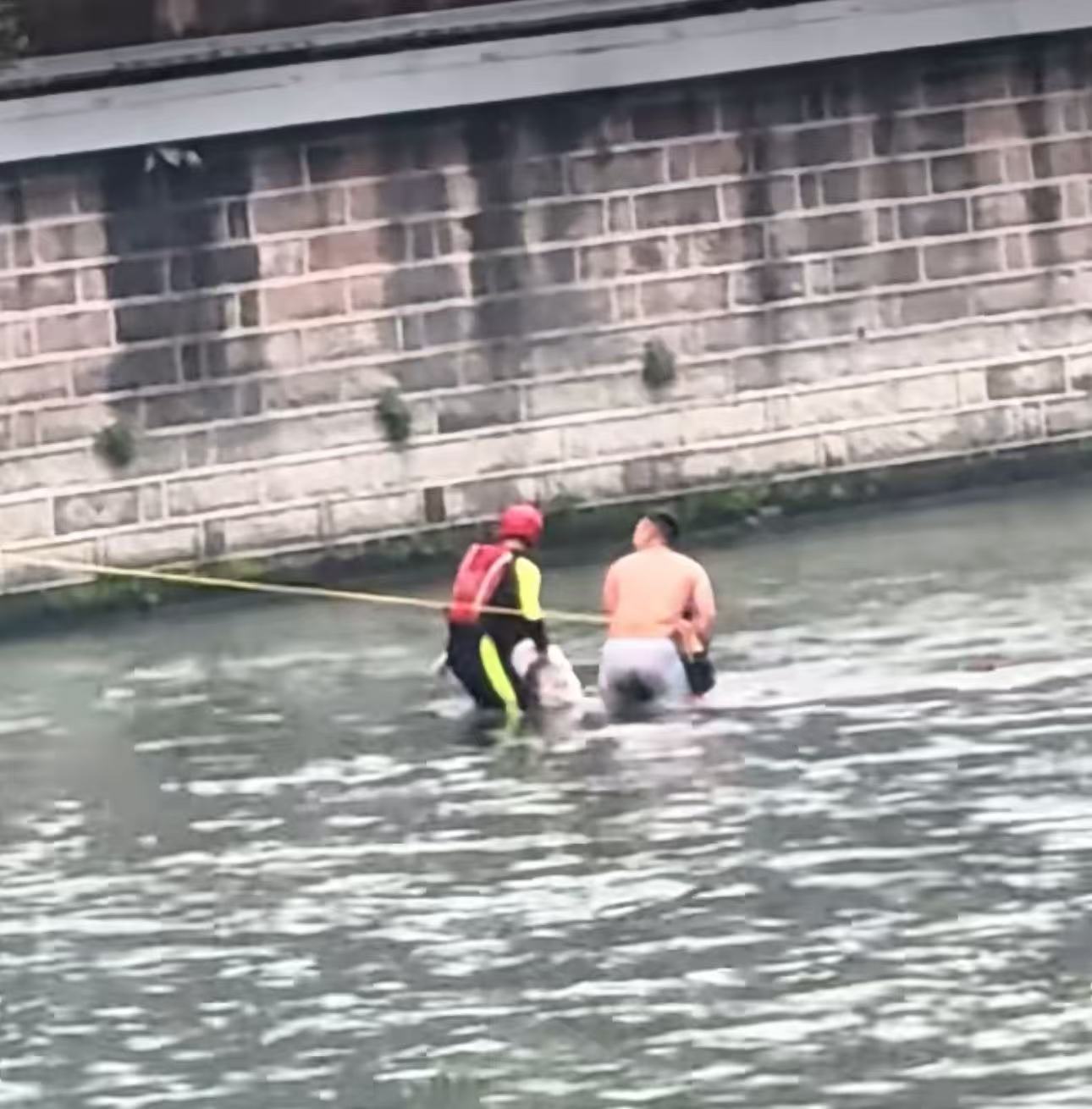 体力在低温与激流中急速流逝。恍惚间,他望见朋友等人已赶到下游梯步处,并准备了绳子和长杆;更让他心头一热的是,岸边一名身材健壮的男子(张浩楠)正在脱衣准备下水。他回忆说,“我一边招手一边喊‘来接下,我快遭不住了’”。