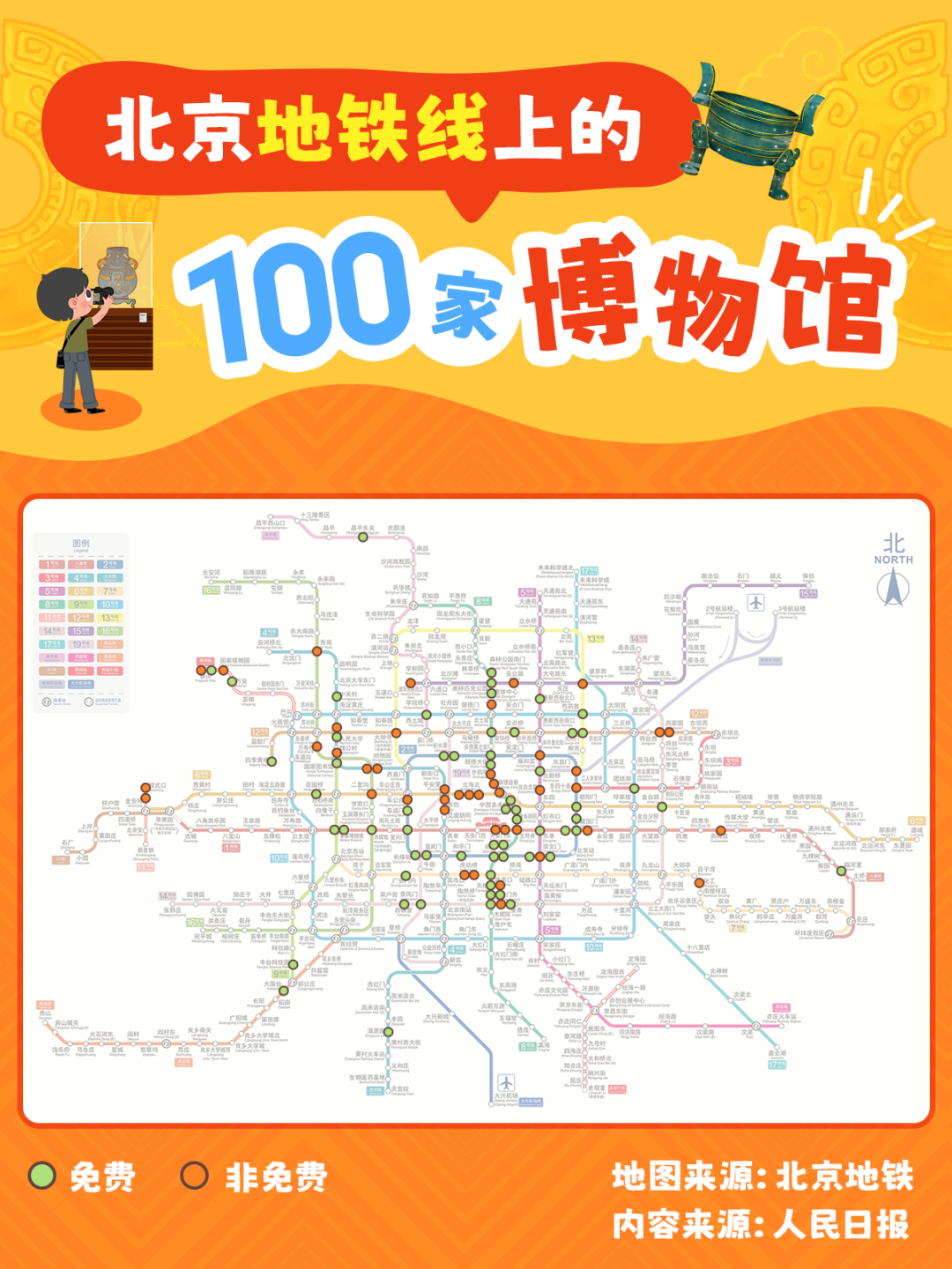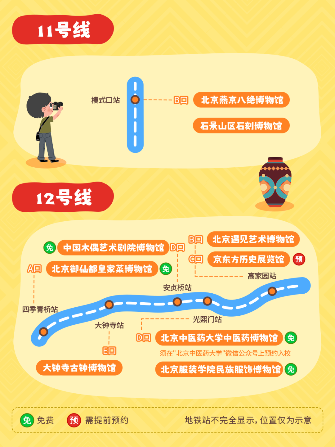北京地铁线上的博物馆地图带大家解锁100家博物馆,出地铁步行1公里内即可打卡历史、科技、艺术等多元场馆,轻松开启便捷又丰富的文化之旅。