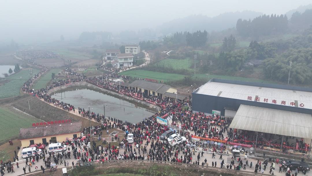 帽石村离安岳县城不算远,车程有20多公里。当天上午9时许,慕名来参加活动的人越来越多,停放的车辆逐渐从村口排到了几公里外,现场有不少交警、地方政府工作人员指挥交通。