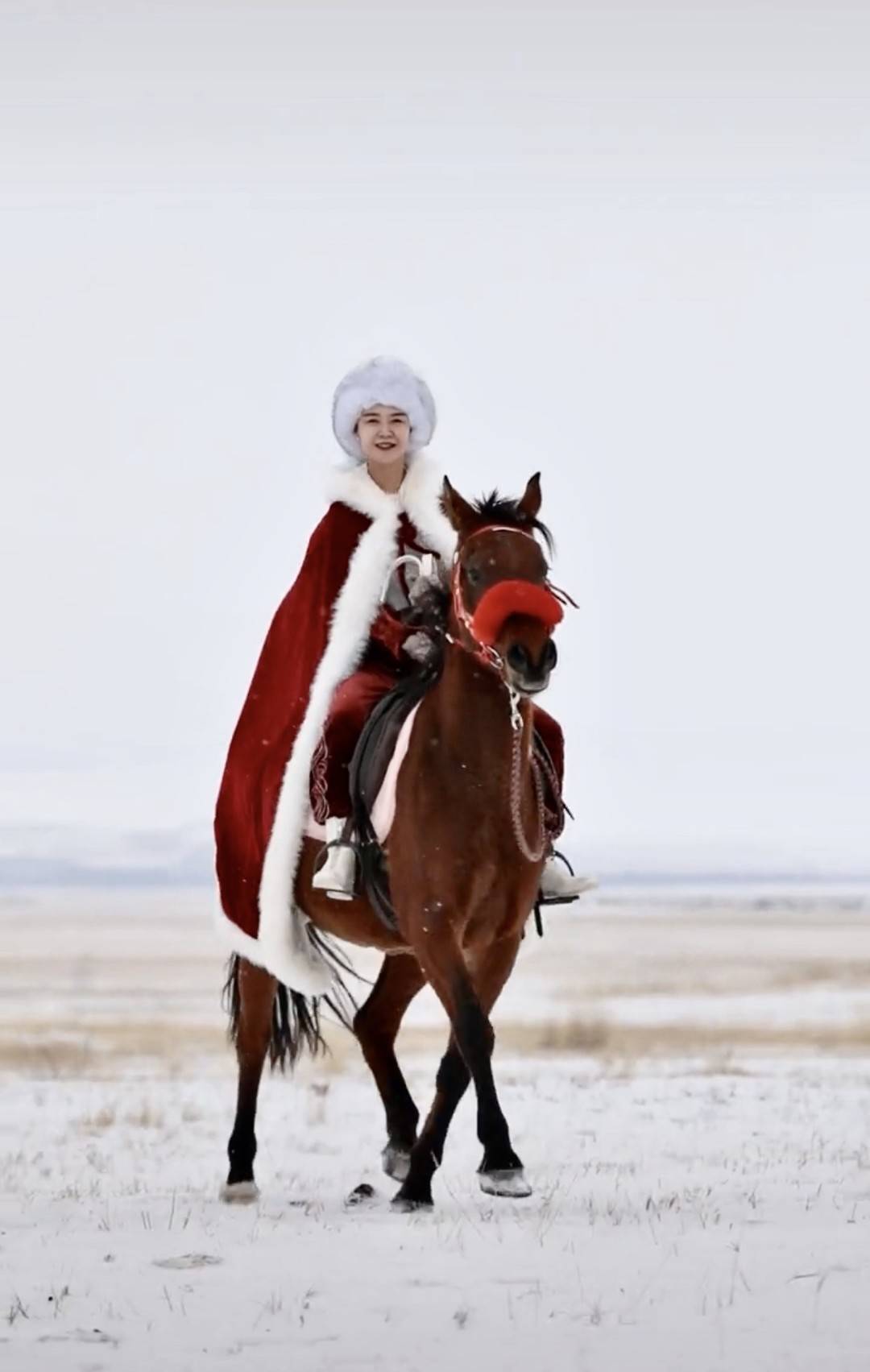 提起贺娇龙,我对她的印象似乎还停留在2020年初冬,身披红色斗篷,在雪地策马奔腾。