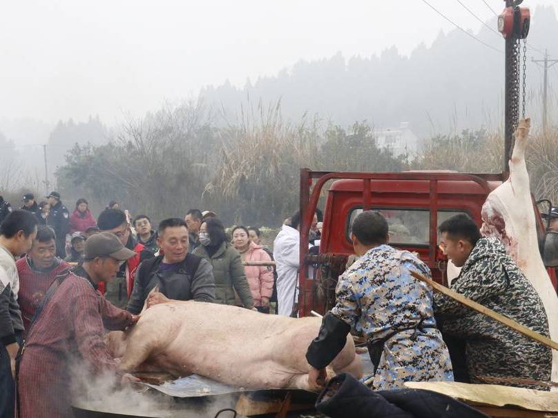 1月15日清晨7点左右,天还蒙蒙亮,薄雾轻笼的资阳市安岳县通贤镇帽石村,已经升起了袅袅炊烟。当天,村里将举办一场“刨猪宴”乡村民俗文化节活动,不少村民和志愿者早早忙活起来。