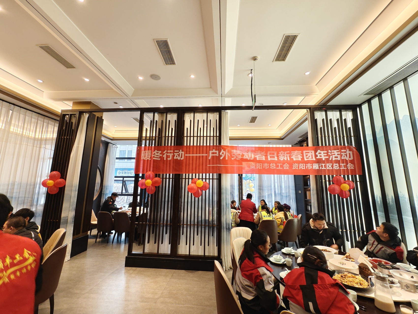 活动现场开展了政策咨询、普法宣传,并重点讲解了新就业形态劳动者专项互助保障政策。参与者还一同享用了温馨的团年饭,气氛融洽。