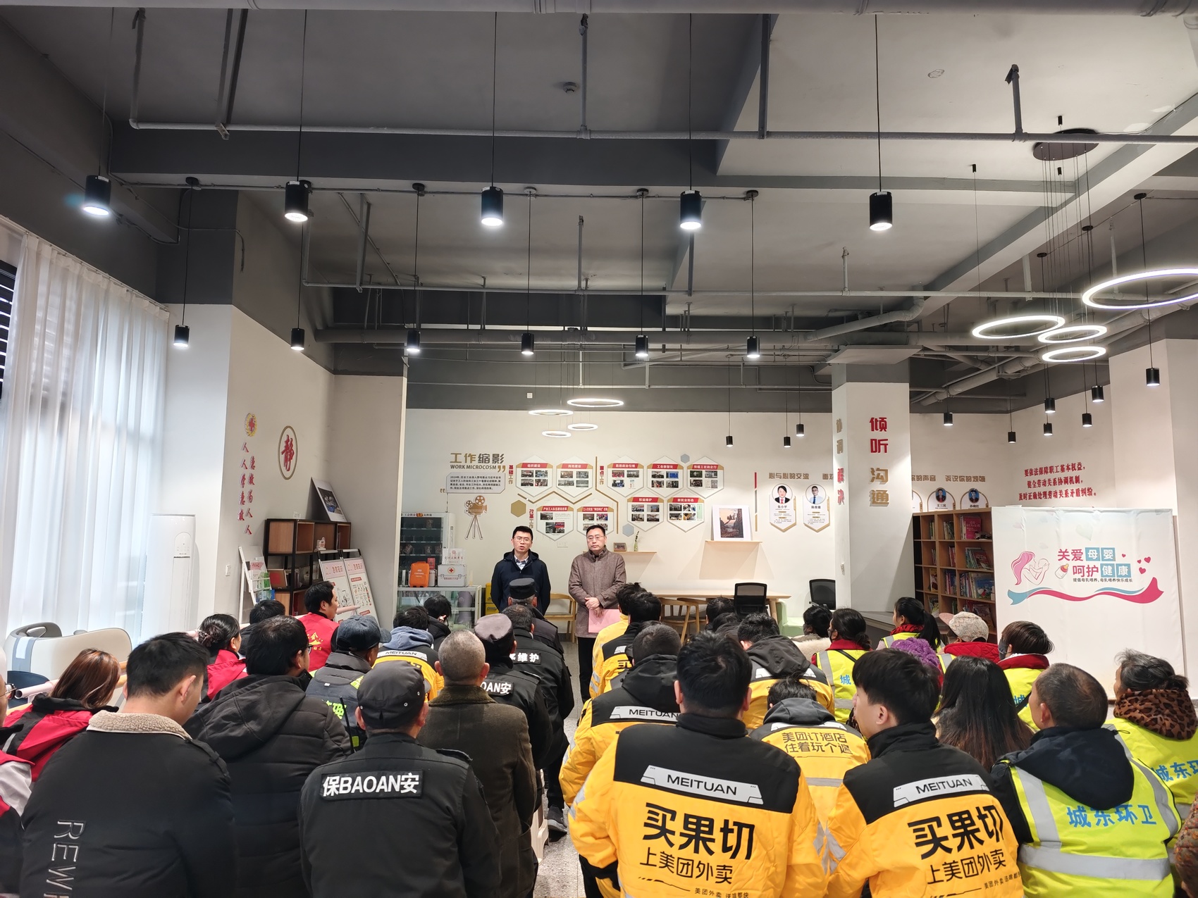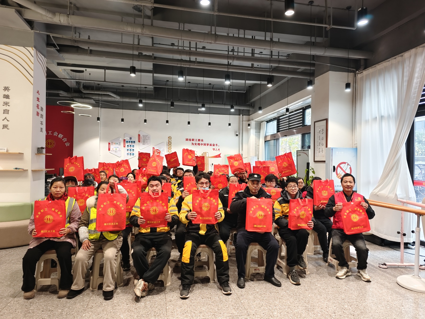 1月15日是中华全国总工会设立的“工会服务户外劳动者日”。当天上午,资阳市总工会联合雁江区总工会在圣高广场共享职工之家开展慰问活动,为40余名外卖员、环卫工人、快递员、保安员等户外劳动者代表送上暖心关怀。