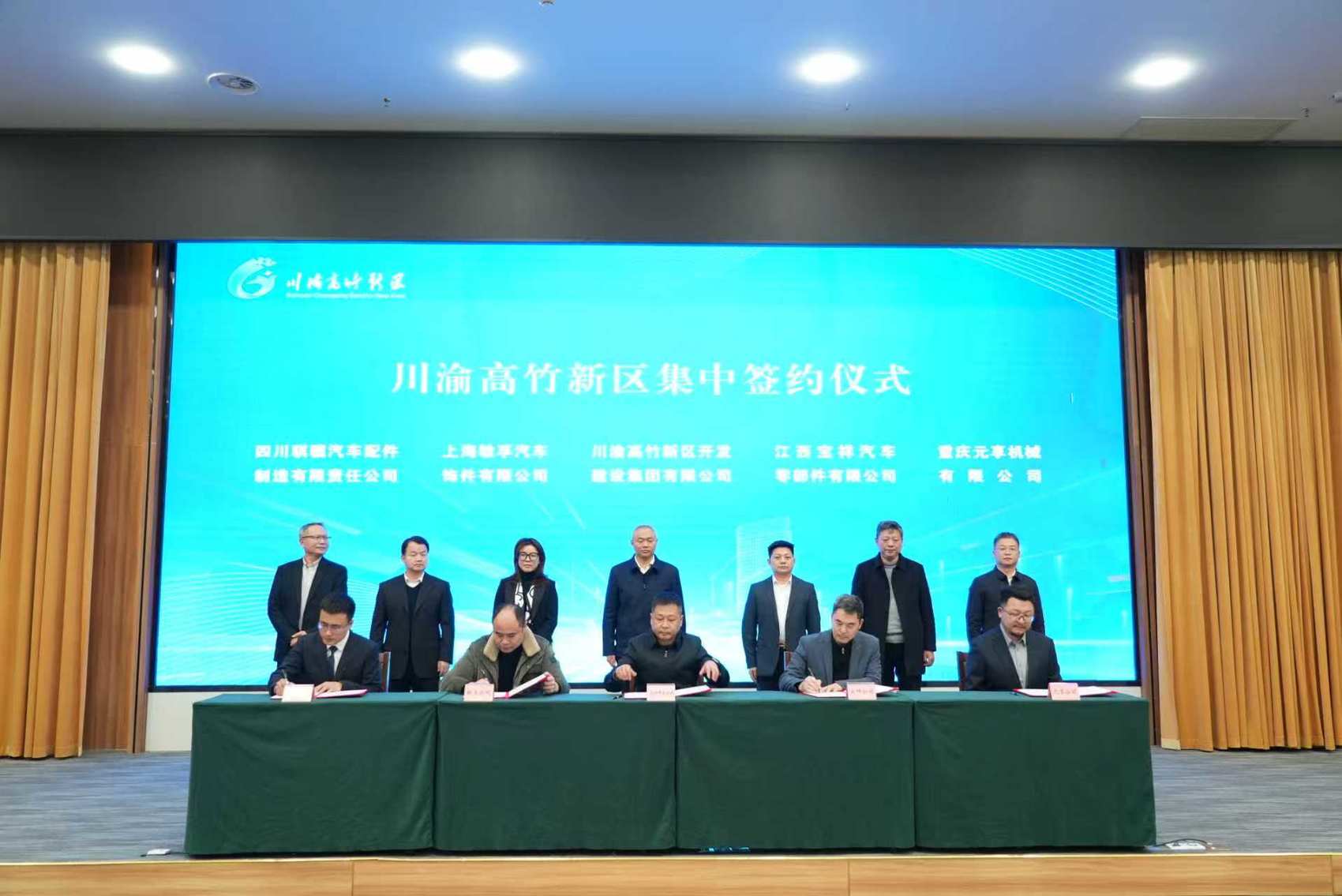 1月15日,川渝高竹新区与江西宝祥汽车零部件有限公司、上海敏孚汽车饰件有限公司、重庆元享机械有限公司、四川骐骥汽车配件制造有限责任公司4家企业达成合作,项目总投资12亿元,全部建成达产后,预计可实现年产值约19亿元,贡献税收近5千万元。这也是继去年引进赛帕斯、翰吉德等产业链关键项目后,新区在智能网联新能源汽车赛道上的又一次重要布局,标志着其产业生态从“集聚”迈向“集群”。