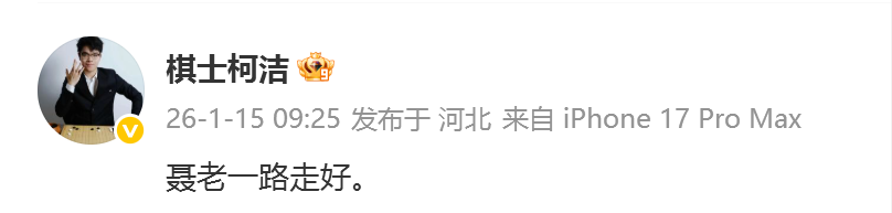 刚刚,柯洁发文悼念聂卫平:聂老一路走好。