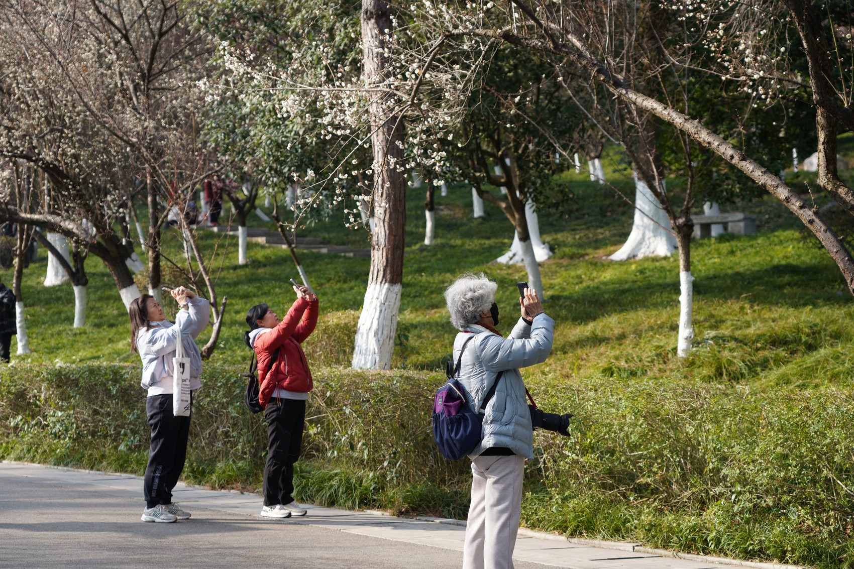 1月15日,绵阳西山公园的“梅花预告片”准时上线。公园内,不少梅花争相吐艳,红霞灼灼、白雪皑皑,为沉静的季节添上鲜明跃动的色彩。游客们穿梭其间,细嗅幽香、举机拍摄,人气十足。