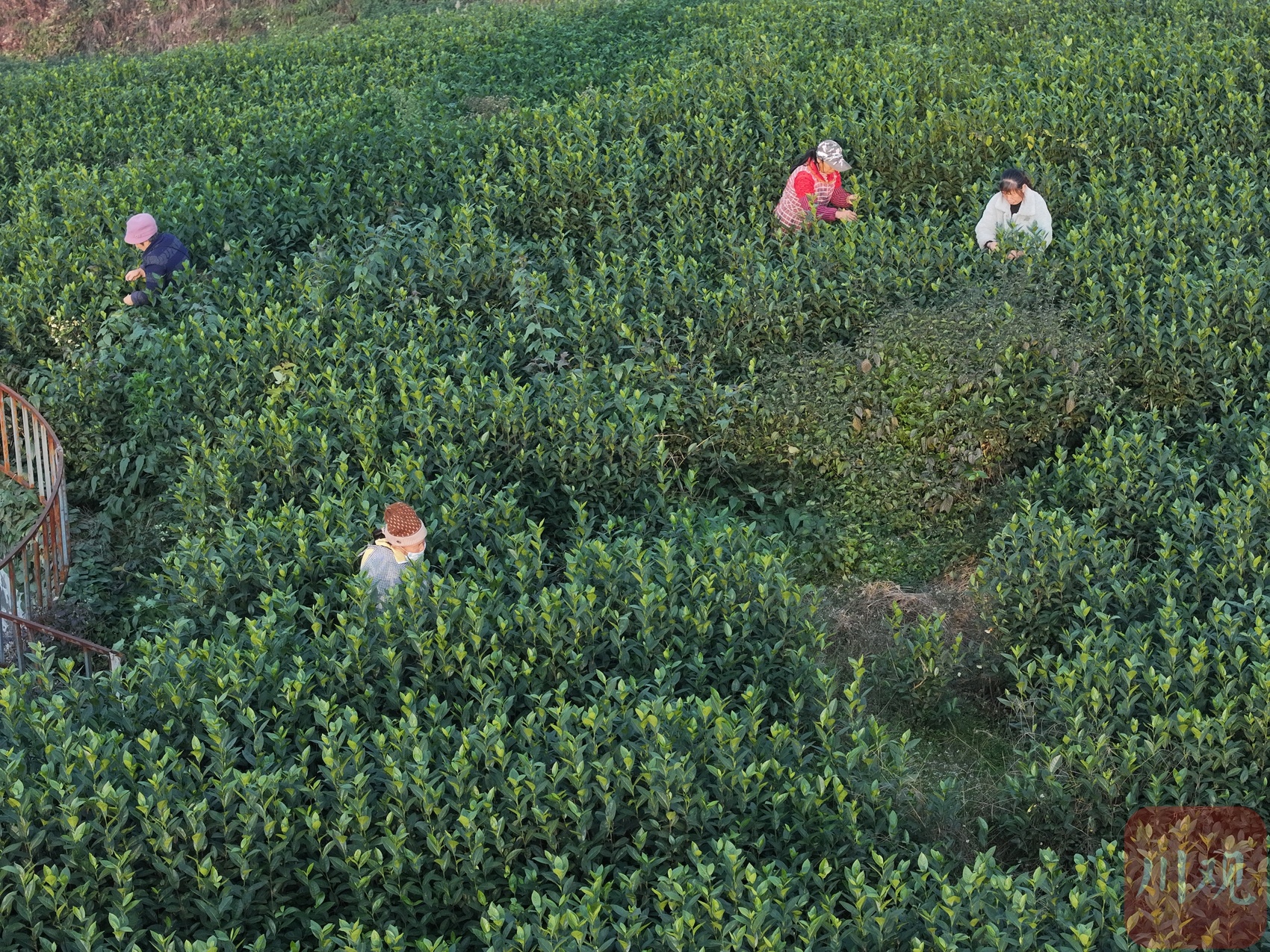 1月15日清晨,天刚蒙蒙亮,宜宾市江安县怡乐镇长沙村的早茶基地里已是一片忙碌。60余名穿着冬装的村民斜挎竹篓,在晨雾里熟练地给茶树“掐尖”。很快,翠绿的芽茶便铺满竹篓底部。
