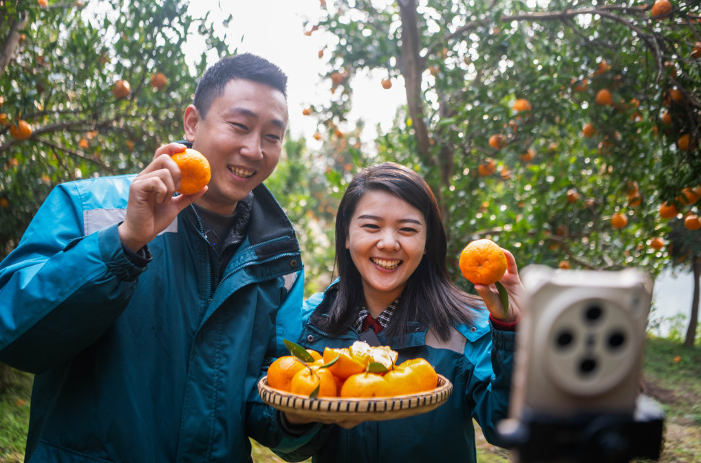 近日,重庆市黔江区阿蓬江沿岸数千亩柑橘林迎来丰收季,当地通过举办采摘体验、线上直播等活动,拓宽柑橘销售渠道,推动柑橘出村进城,有效促进农民增收和乡村产业振兴。