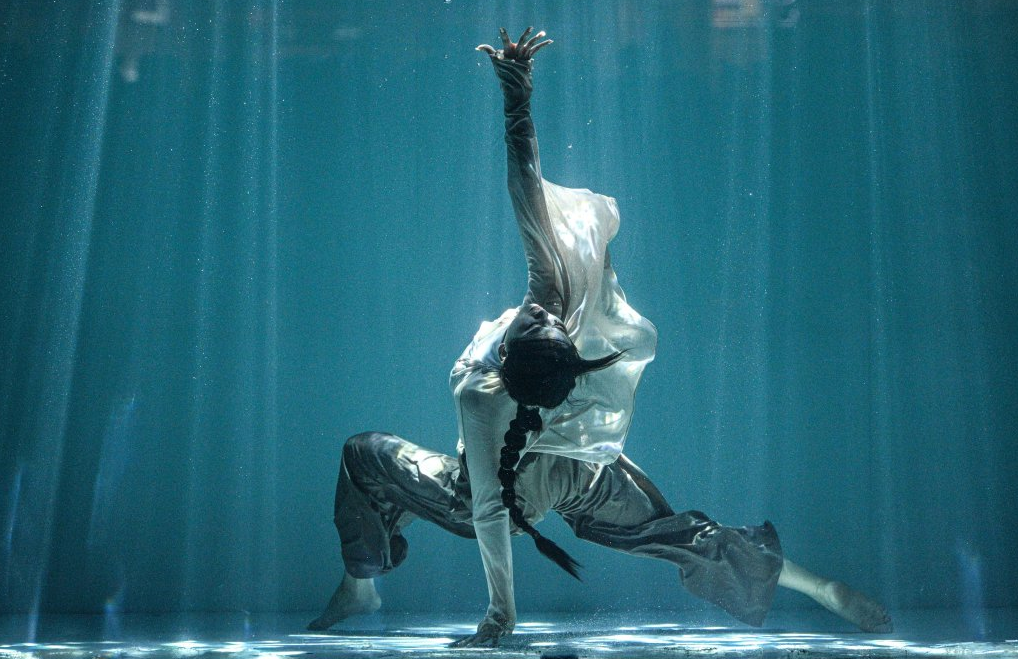 1月14日,舞者在2026中国极限舞蹈表演赛期间进行水下舞蹈表演。