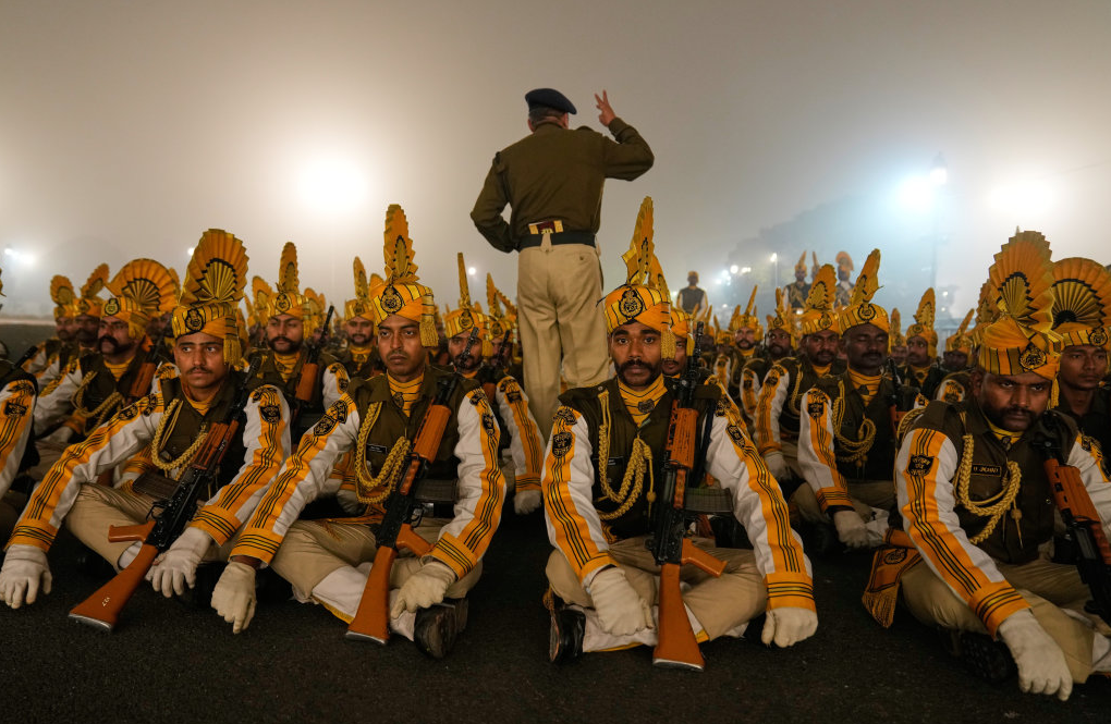 1月15日,在印度首都新德里,士兵参加共和日阅兵彩排。