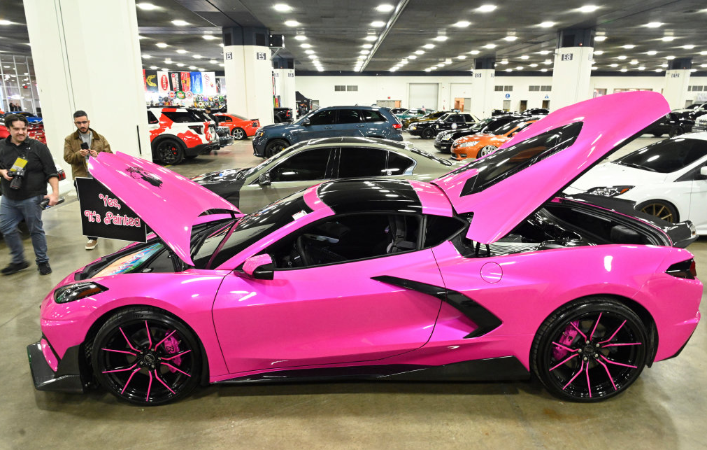 美国底特律车展于1月14日至25日在“汽车之城”底特律举行。1月14日,人们在美国底特律车展的媒体开放日现场观看一辆粉色涂装汽车。