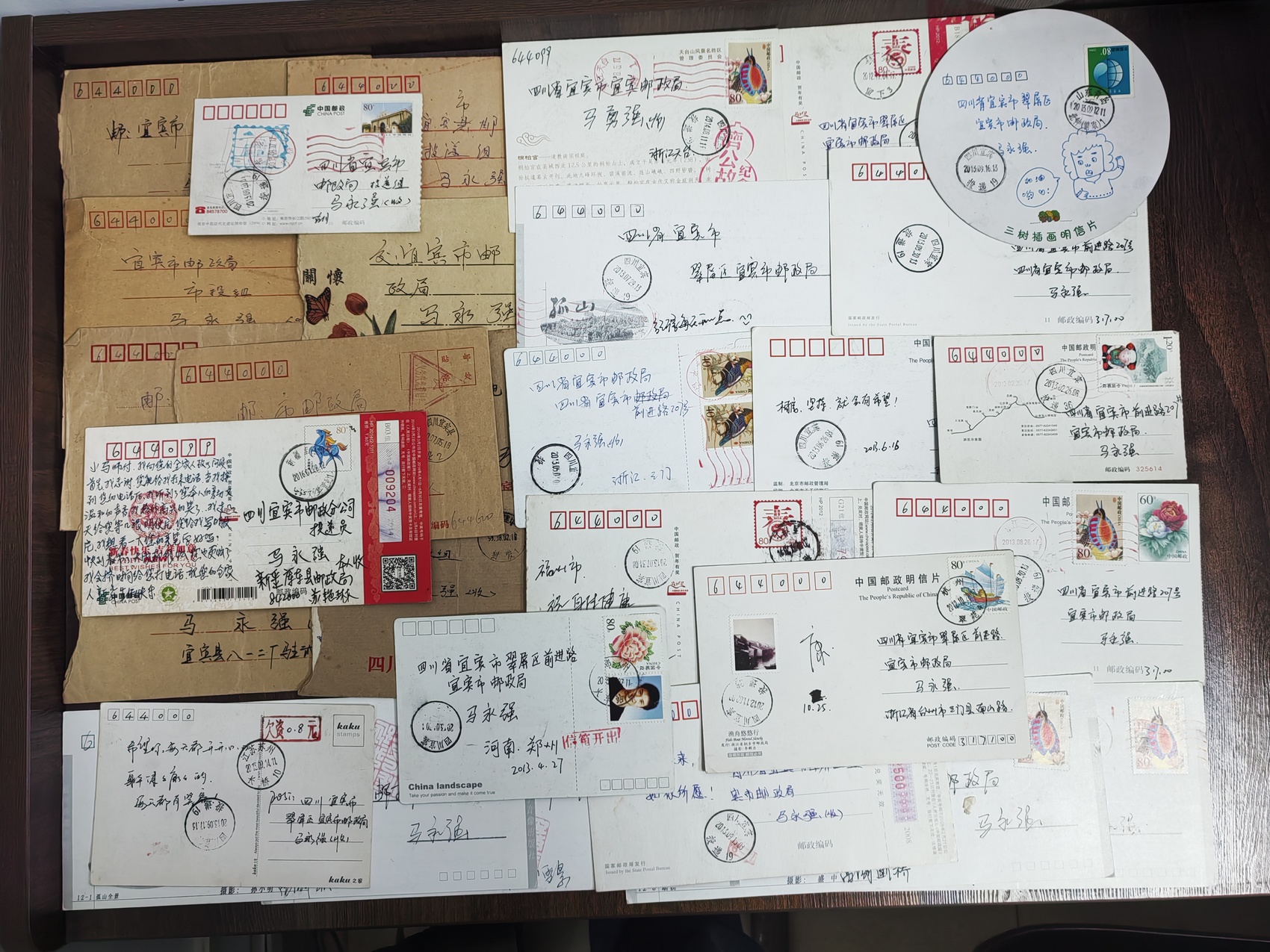马永强珍藏着一些写着感谢话语的明信片。(受访者供图)