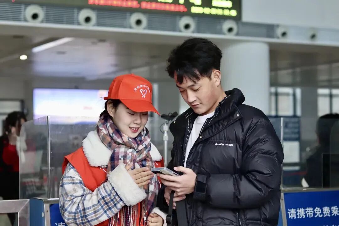 合川站积极组织党员服务队和青年志愿者在进站口、站台、地道口等关键点位加强值守,为旅客解答疑惑和推荐路线。