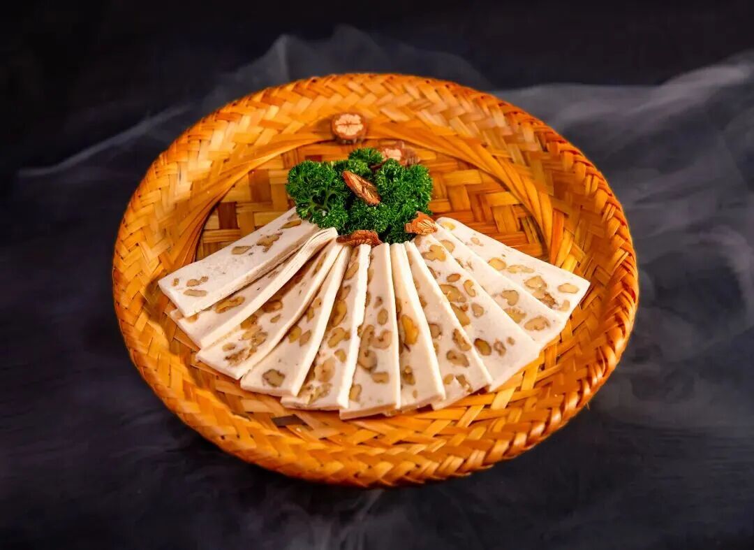 合川桃片是以糯米、核桃仁、白砂糖为原料制成的传统小吃。色泽洁白,口感绵软香甜。