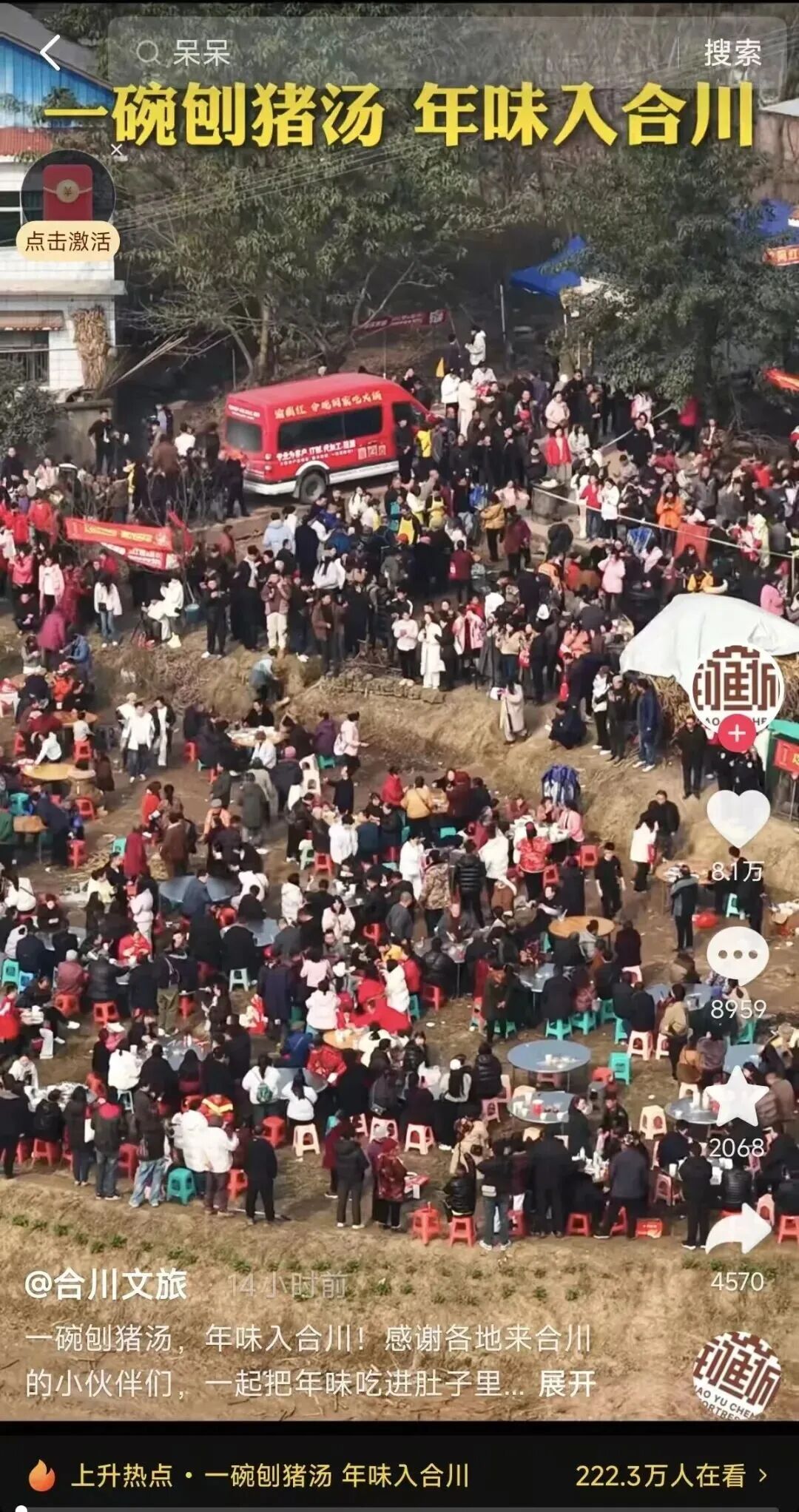 在网上刷到合川“杀年猪、吃刨汤”的活动后,我立刻心动了,坐着动车就赶来了。合川人的热情好客和这份浓浓的烟火气让我印象深刻,我已经将这趟追着年味来的旅行推荐给身边所有朋友了!