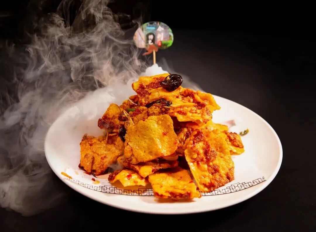 合川肉片是以黑猪后腿肉为主要原料的美食,成品色泽金黄酥亮,入口外酥里嫩、咸香浓郁,风味十足。