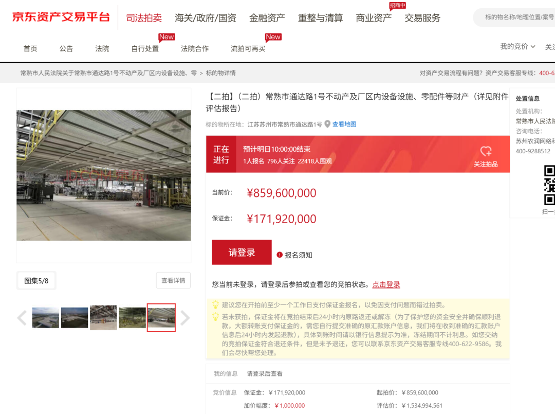 此次事件的核心争议集中在资产估值差异。姚振华方面提供的第三方评估结果显示,观致汽车常熟生产基地相关资产市场价值约为80亿元,但常熟市人民法院委托的评估报告中,该资产总估值仅为15亿元。据京东司法拍卖平台公示,此次拍卖标的为“常熟市通达路1号不动产及厂区内设备设施、零配件等财产”,评估报告由苏州市天元土地房地产评估有限公司出具。