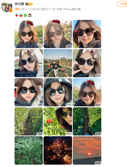 稍早前,在她发布的动态中,她以齐肩中长发造型采摘草莓,还与小番茄合影,身形明显变瘦,状态松弛。