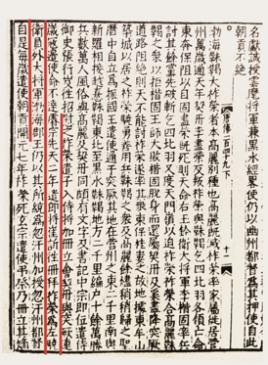 《册府元龟》记载: 先天二年二月……是月,封靺鞨大祚荣为渤海郡王。大祚荣圣历千自立为振国王,在营州东二千里,兵数万人。至是,遣郎将崔忻往,册命祚荣左骁卫员外大将军、渤海郡王,仍以其所统为忽汗州都督,自是每岁遣使朝贡。