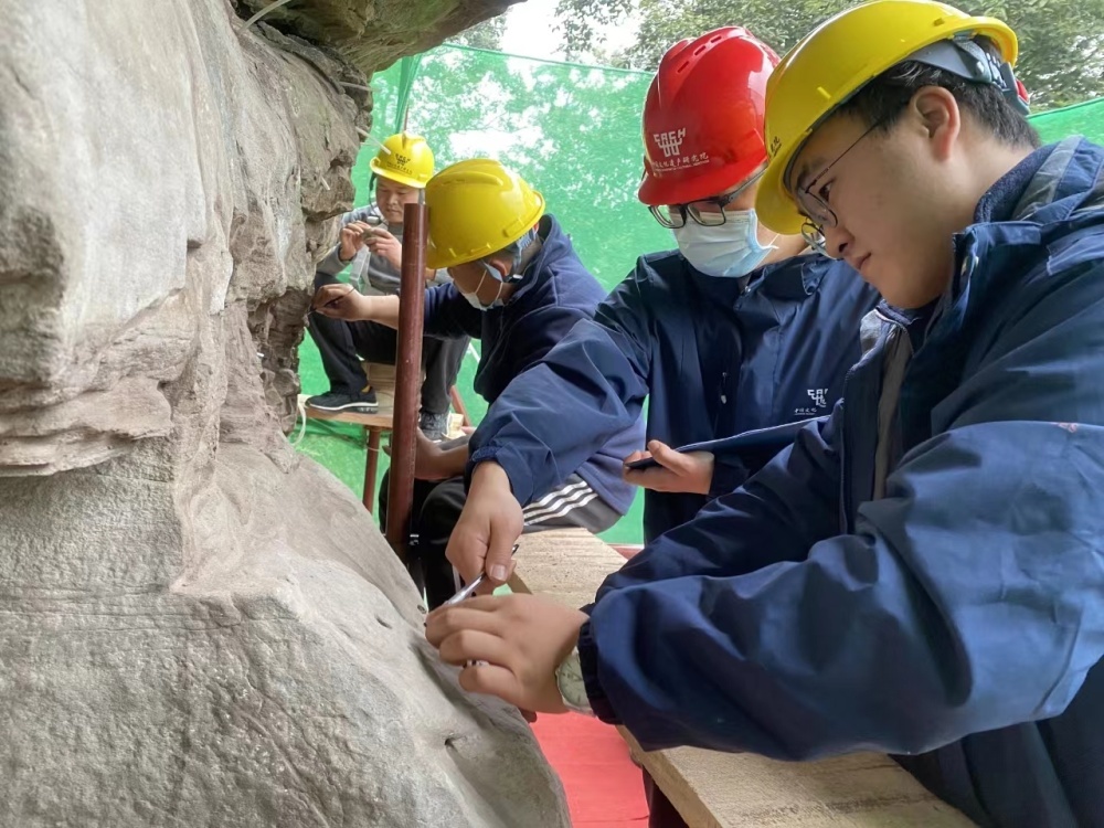 在安岳石窟研究院44名精干力量中,像罗映一样的年轻人居多。罗映毕业于建筑与土木工程专业,安岳石窟抢救保护(一期)项目就是在他手上结项的。他说:“文物保护与一般的建设项目不同,我们要遵守一个原则,最小干预,维护文物本体风貌,所以现在要尽可能地做到修补痕迹几乎不被人察觉。”