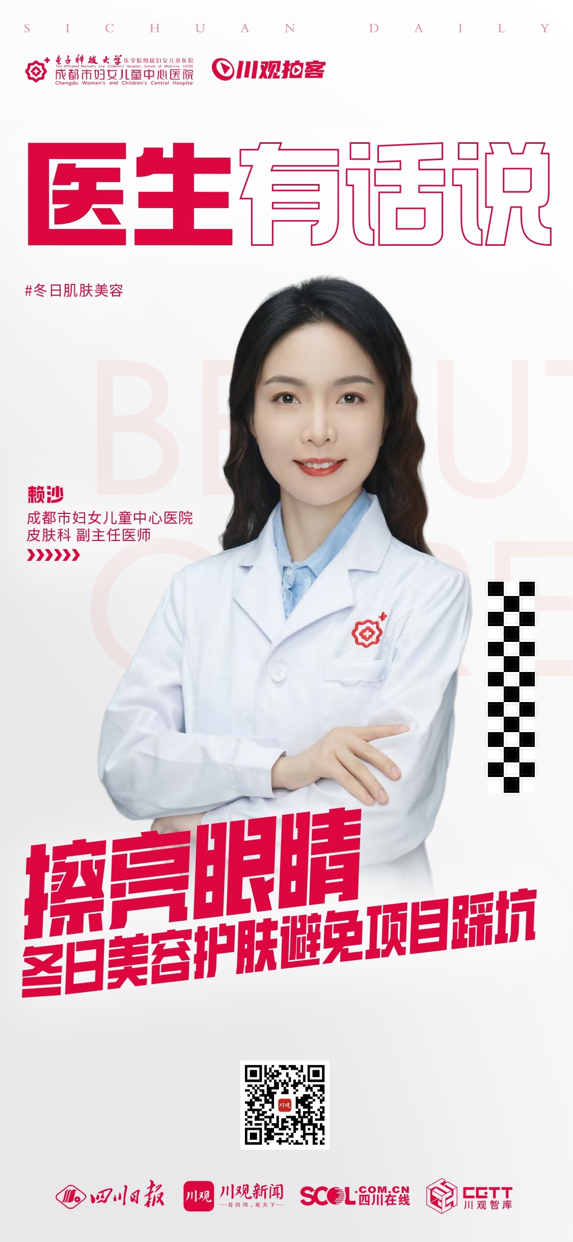 冬天紫外线强度减弱,气温适宜,少出汗,能极大降低术后反黑和感染风险,恰恰是进行皮肤美容治疗的“黄金窗口期”。本期栏目,来自成都市妇女儿童中心医院皮肤科的副主任医师赖沙,介绍几个常见的美容治疗项目,大家可以根据自己的需求找皮肤科医生做进一步咨询。