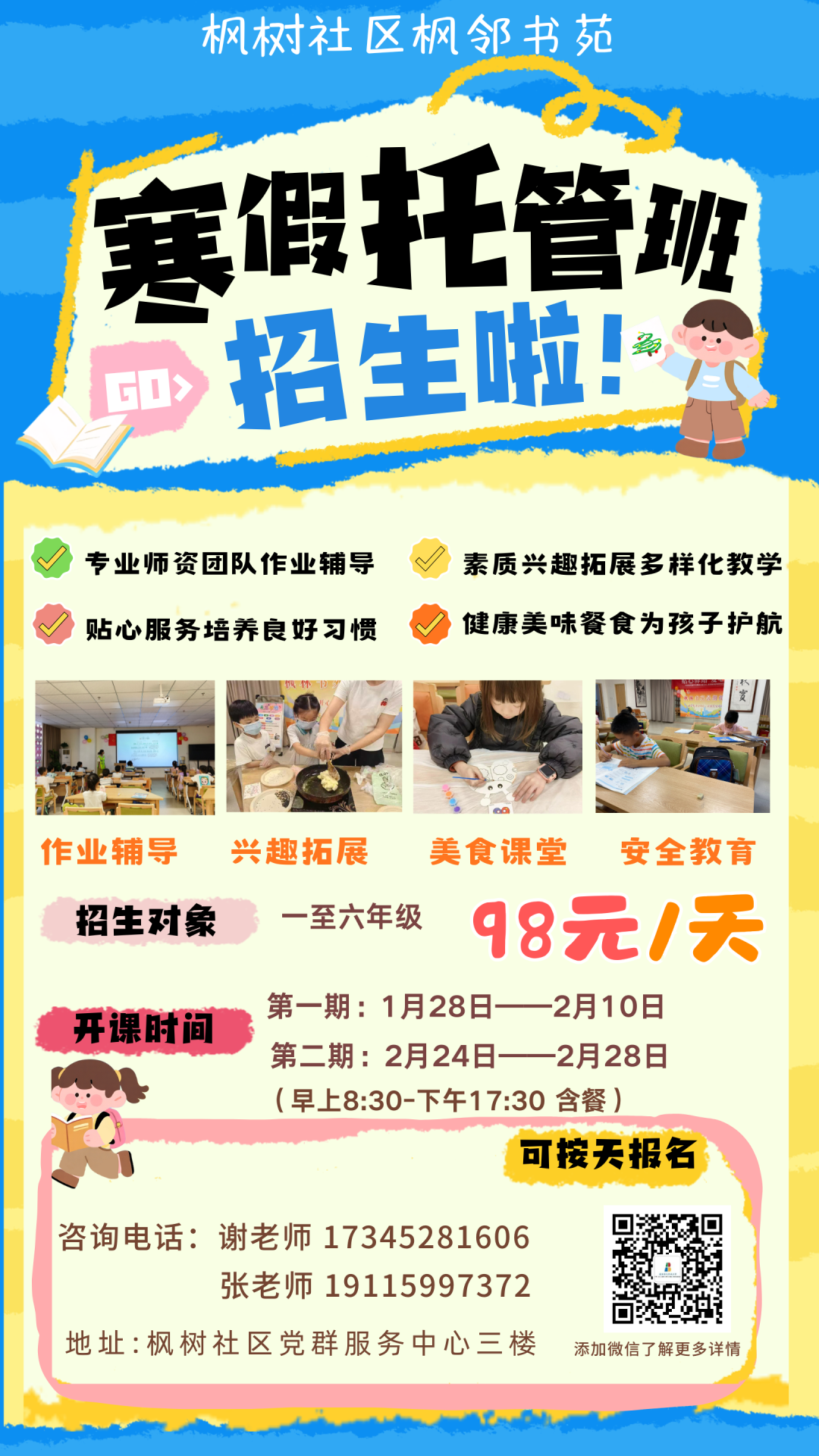 主要面向辖区内6-12周岁的小朋友(优先双职工及特殊困难家庭),限额50名,报满即止。