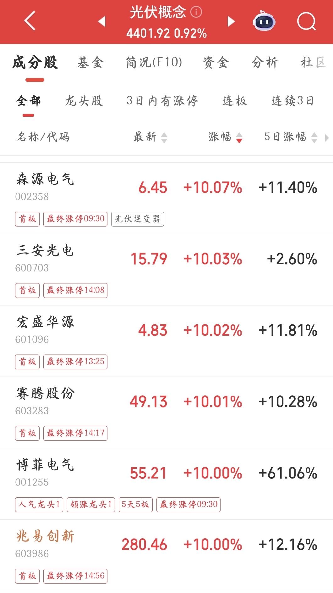 光伏概念板块多股涨停。