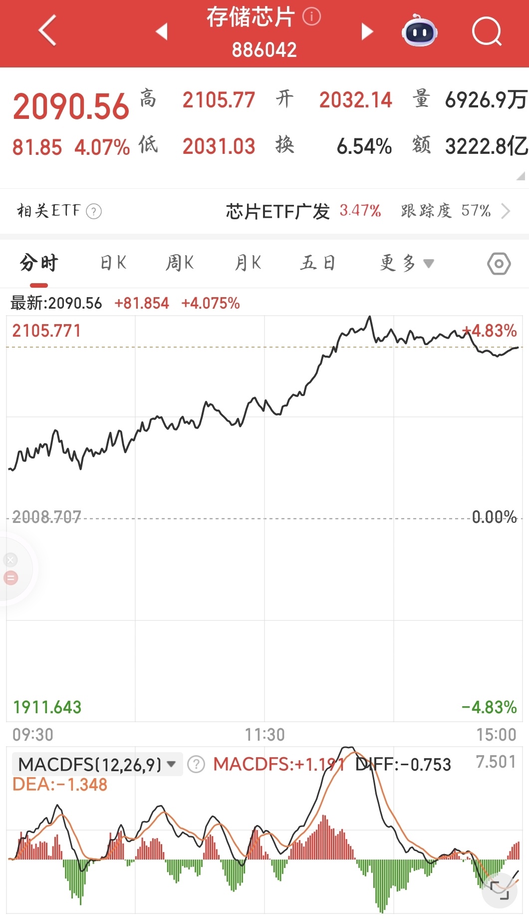 存储芯片板块逆势上扬。