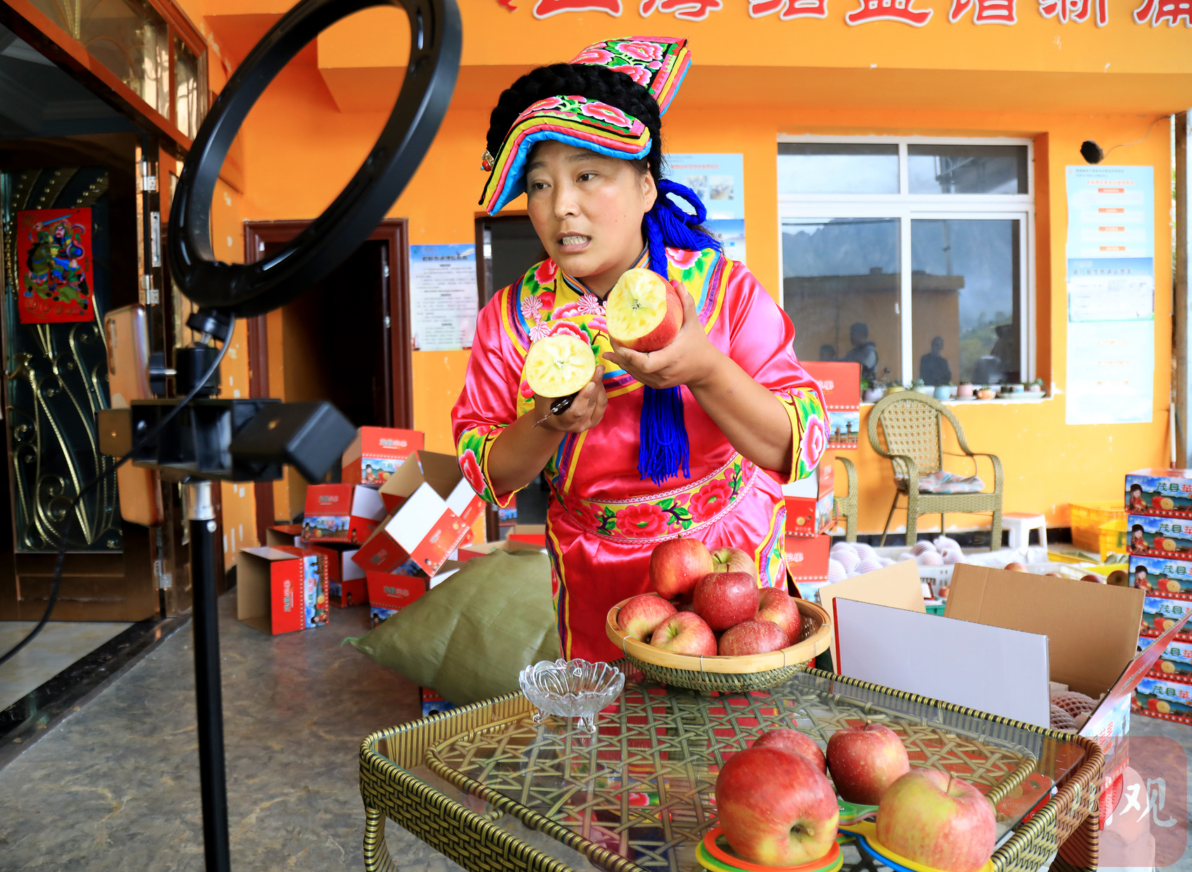 直播卖苹果的刘平巧。阿坝州妇联供图