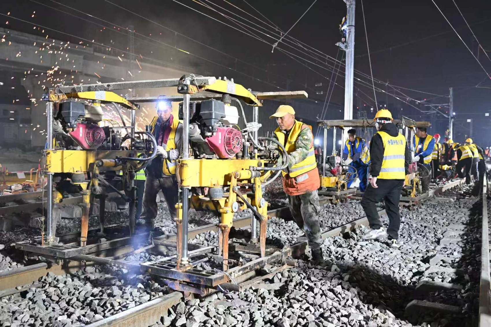 中铁八局成都车站扩能改造项目经理吴朝旭介绍,此次拨接施工涉及工务、电务、供电多个专业立体交叉施工,需要实现枢纽地区铁路正常运输与工程建设的同步推进。项目团队在拨接施工中采用“沙盘推演”、“模块化预拼装+分段突击”施工模式、“预铺轨排横移+精准拨接”的工艺,将原来需要5小时的作业时间压缩至了3小时,施工效率显著提升。