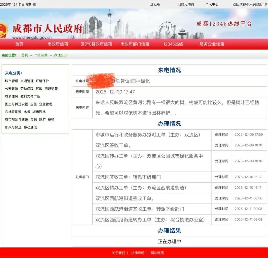 浏览量每秒钟就激增几百次!小范刷新着手机屏幕,几乎不敢相信自己的眼睛。她于2025年12月10日在社交媒体上发布的笔记,仅仅记录了自己为一棵树拨打“12345”政务服务便民热线的经历,却在短短一个月内收获了超过170万的浏览量。