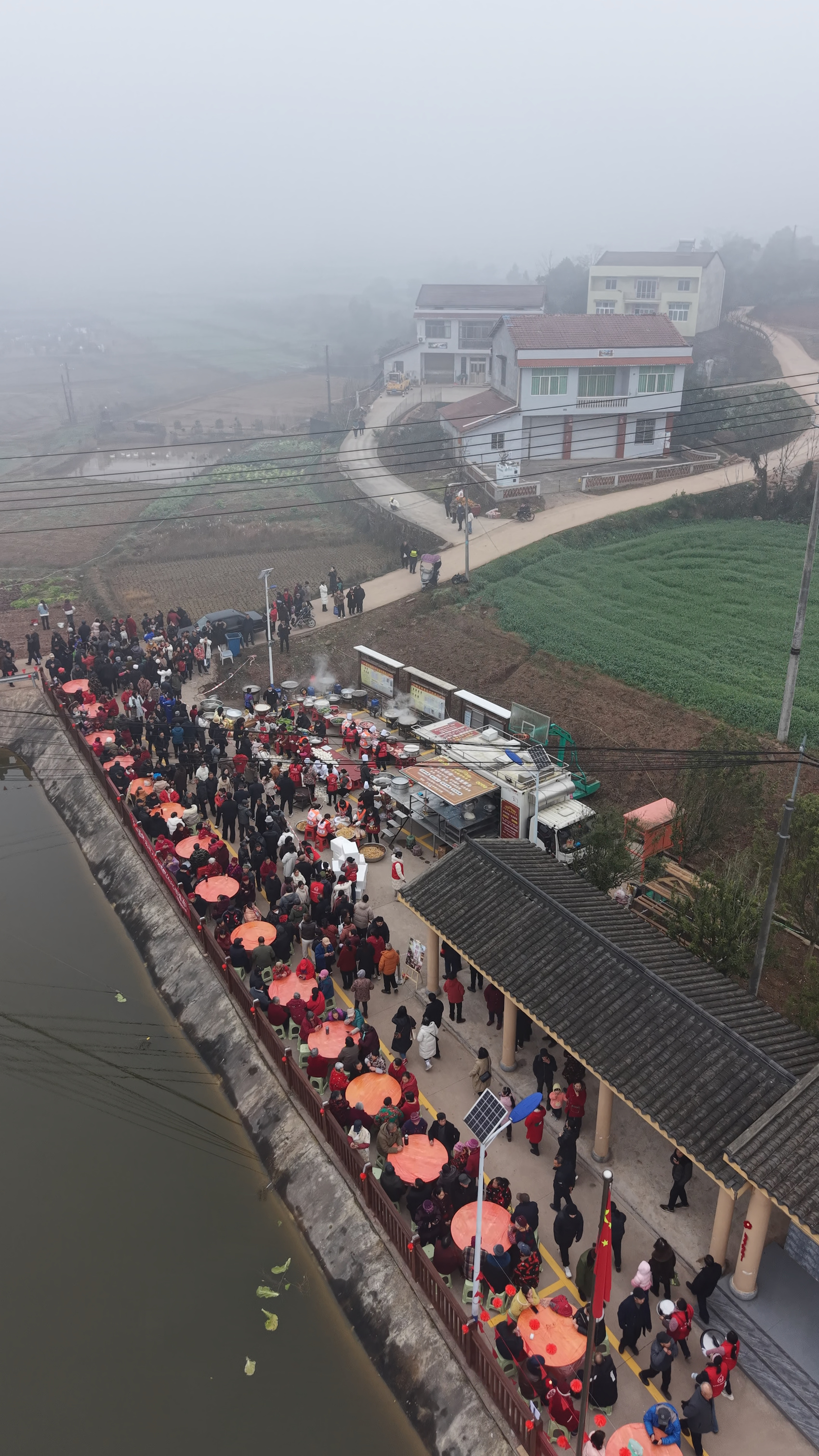 1月15日上午,帽石村迎来大批游客,图为长桌宴。(受访者供图)