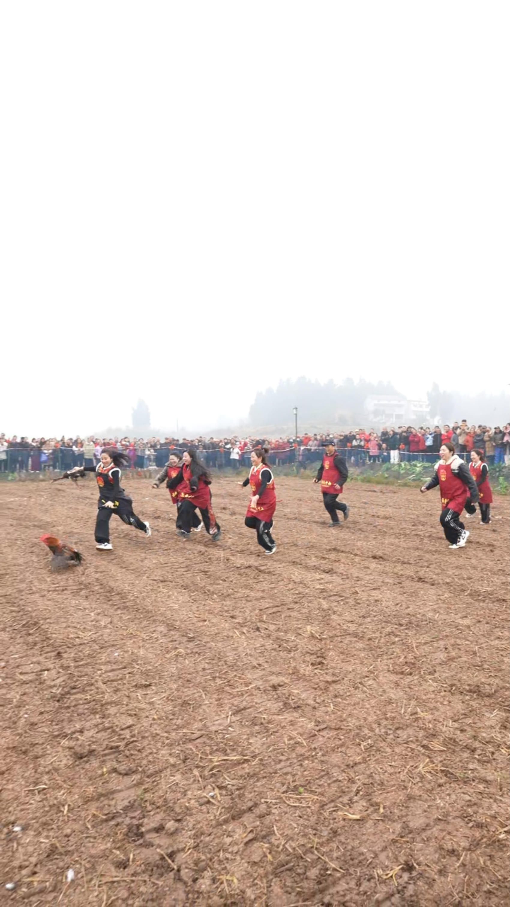 上午10时30分许,随着关祖苹一声“三二一开始”的吆喝,抓鸡鸭鹅兔比赛热闹进行。10名身着围裙的参赛选手俯身追赶,鸡飞鹅叫间,有的选手脸上沾上了鸡毛,有的选手跑丢了鞋子,狼狈又欢乐的模样引得全场大笑。