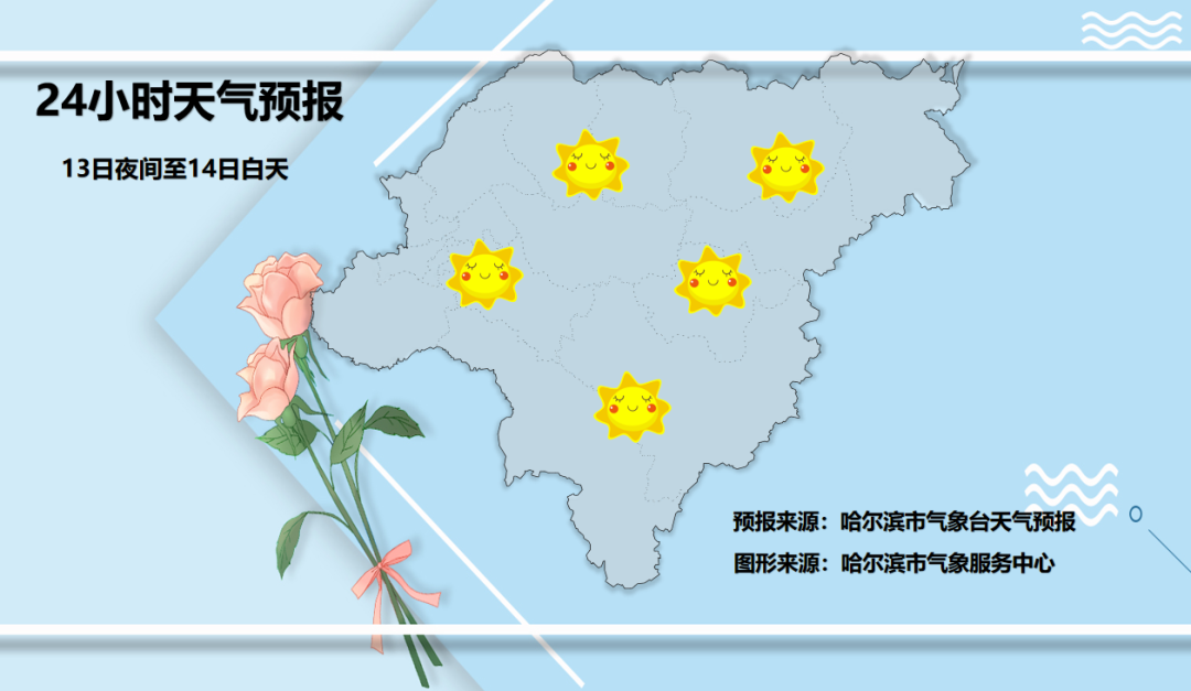 哈尔滨市气象台2026年1月13日发布13日夜间到16日白天全市天气预报: