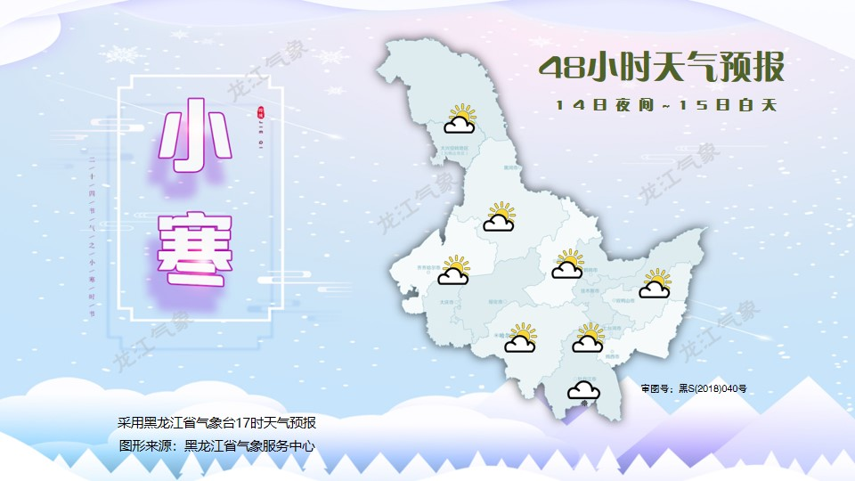 14日白天:伊春北部、佳木斯东部、双鸭山东部多云有阵雪,其它地区晴有时多云。