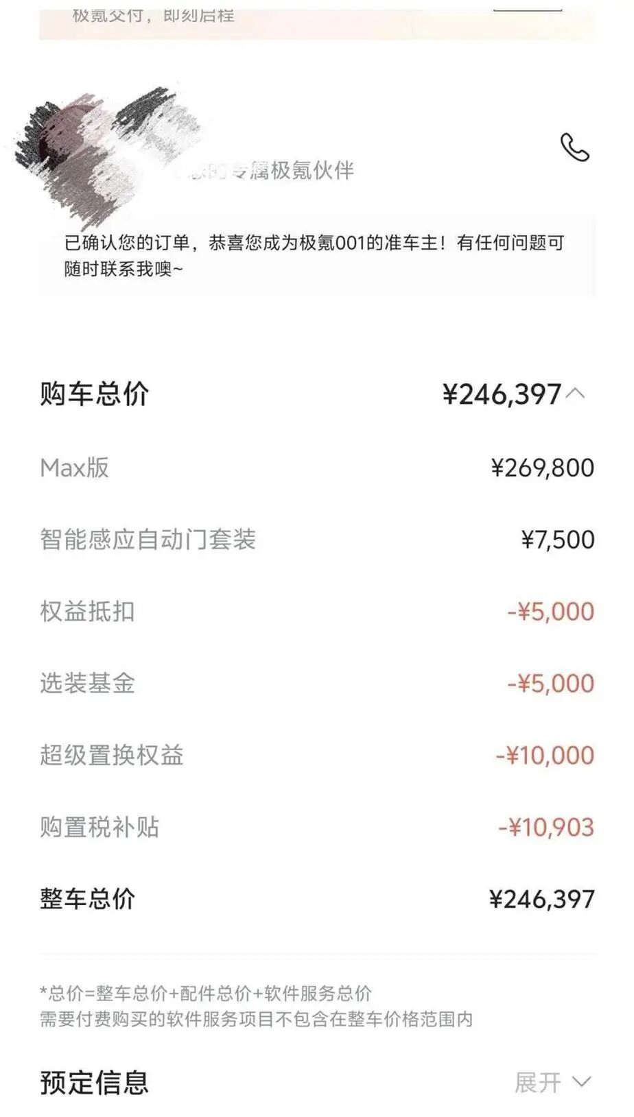 面对用户的疑虑,1月12日极氪官方微信再次发布公告,“对于2025年12月31日24点前下定并锁单的用户,若因极氪原因导致您的车辆需要在2026年开票交付,请放心,极氪将向您提供跨年购置税兜底补贴,补贴金额将直接从您的车价尾款中扣除。”