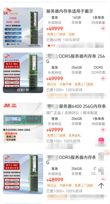 对于近期“一盒内存条换上海一套房”的说法,有业内人士表示,“这个说法更多是噱头,面向消费者的内存不会那么贵。”据了解,单条价格超过4万元的256G的DDR5服务器内存主要是企业、科研机构、政府等以招标等形式批量购买,一般不会面向消费者的市场流通。不过主流的用于手机、电脑等产品的内存条价格,有的也涨到了“千元价位”。