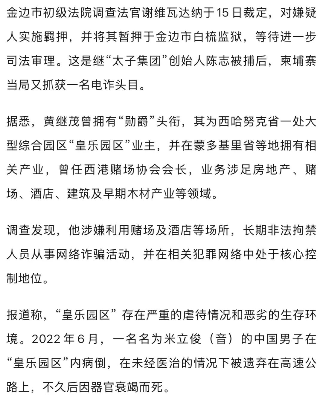 柬埔寨警方近日再逮捕一名电诈犯罪头目——50岁的柬埔寨华裔黄继茂(Li Kuong)。