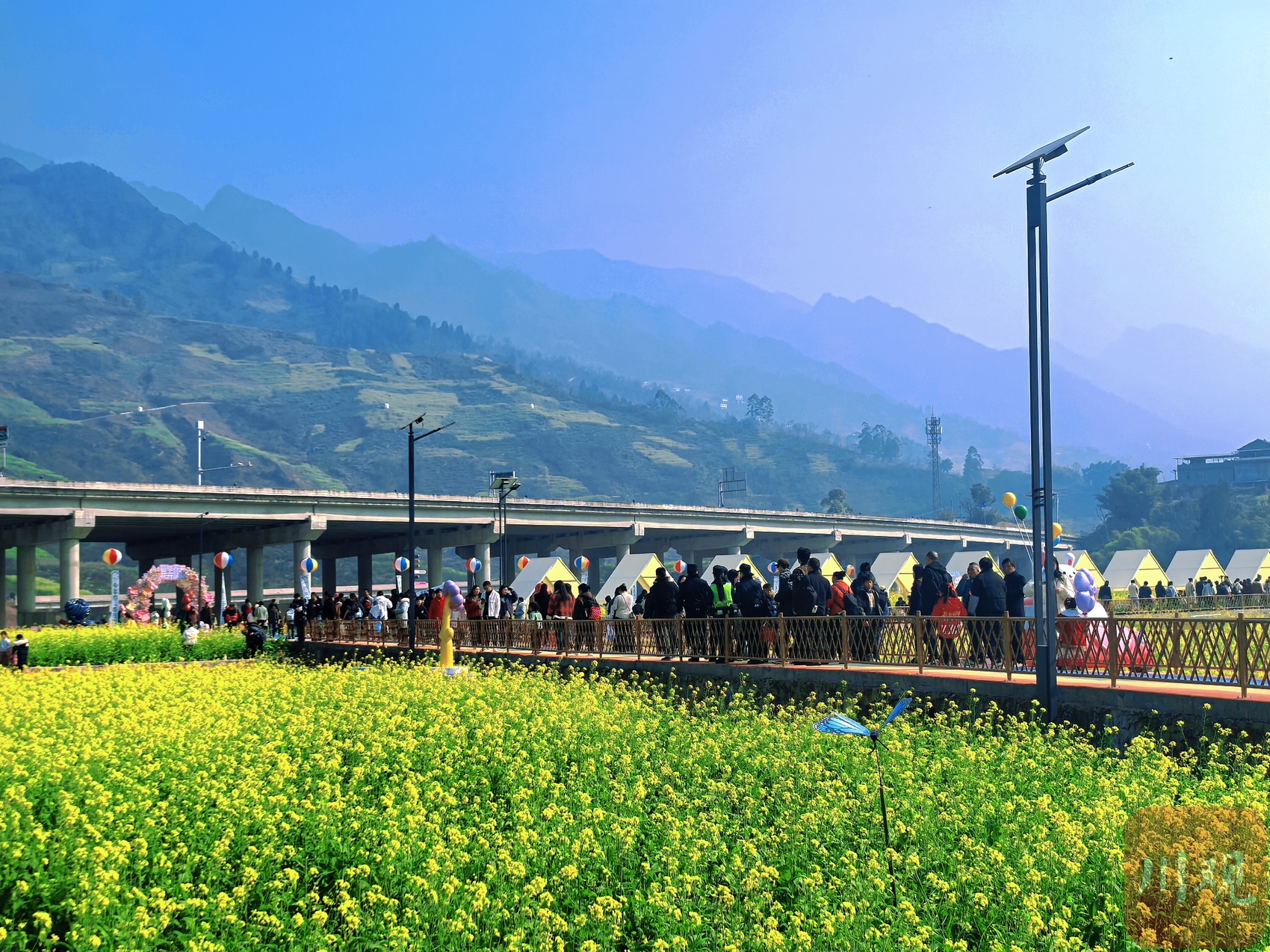 这是当地举办的第九届油菜花文化旅游活动。与往年相比,今年实现了从“静态观赏”到“沉浸式体验”的全面升级。“我们策划了花海音乐会、田野摄影展、非遗集市、农事体验等多元业态,是为了打破传统赏花游的单一模式。”屏山县宇客景区管理有限公司副总经理李川介绍,例如此次主打推出“春日共鸣 花田Live”音乐会,是希望让游客在扑鼻花香与悠扬乐音的交融中,收获视觉与听觉的双重治愈。