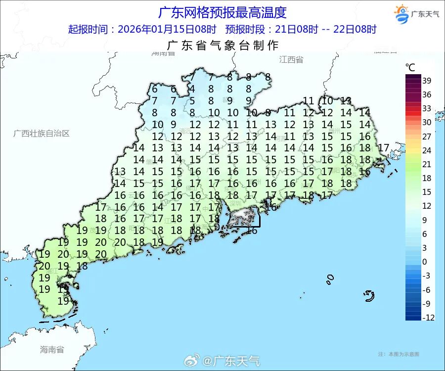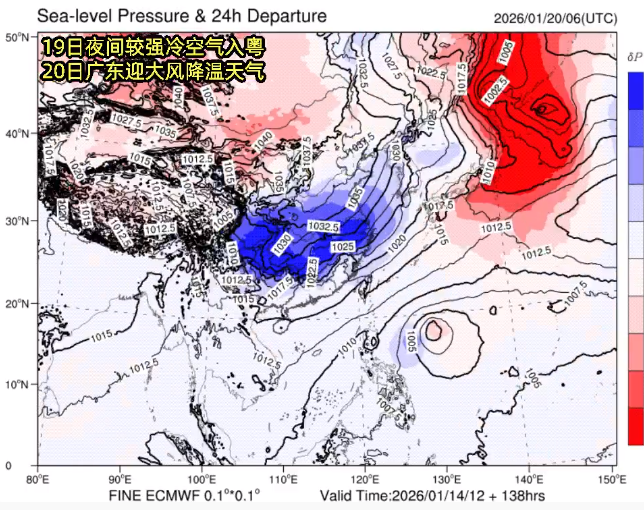 预计下周一(19日)夜间,较强冷空气入粤;下周二(20日),冷空气自北向南影响全省,白天抵达中部,夜间南压至沿海。