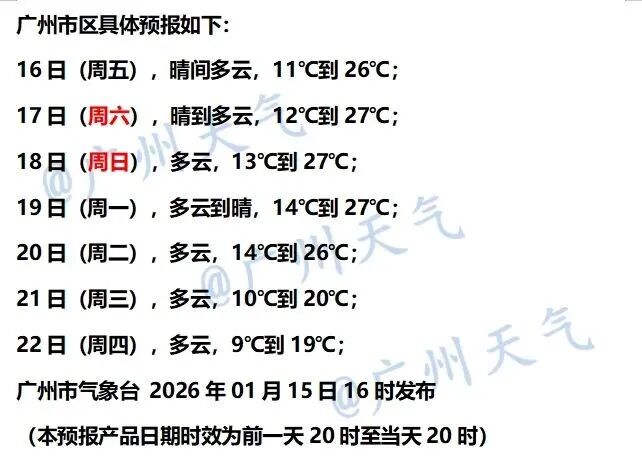@广州天气:今天至下周一(16-19日),晴朗干燥天气维持,早晚有轻雾,气温逐渐回升。