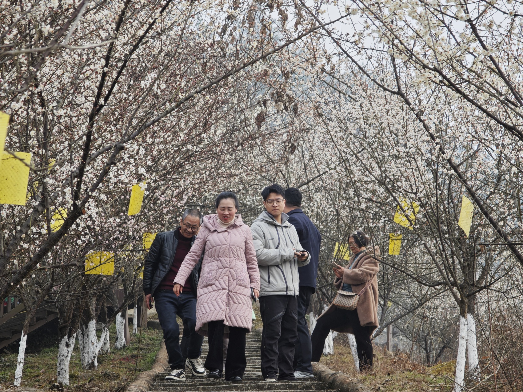 午后,冬阳穿透云雾洒向大地,宾客们又钻进乌梅林赏花拍照留念。