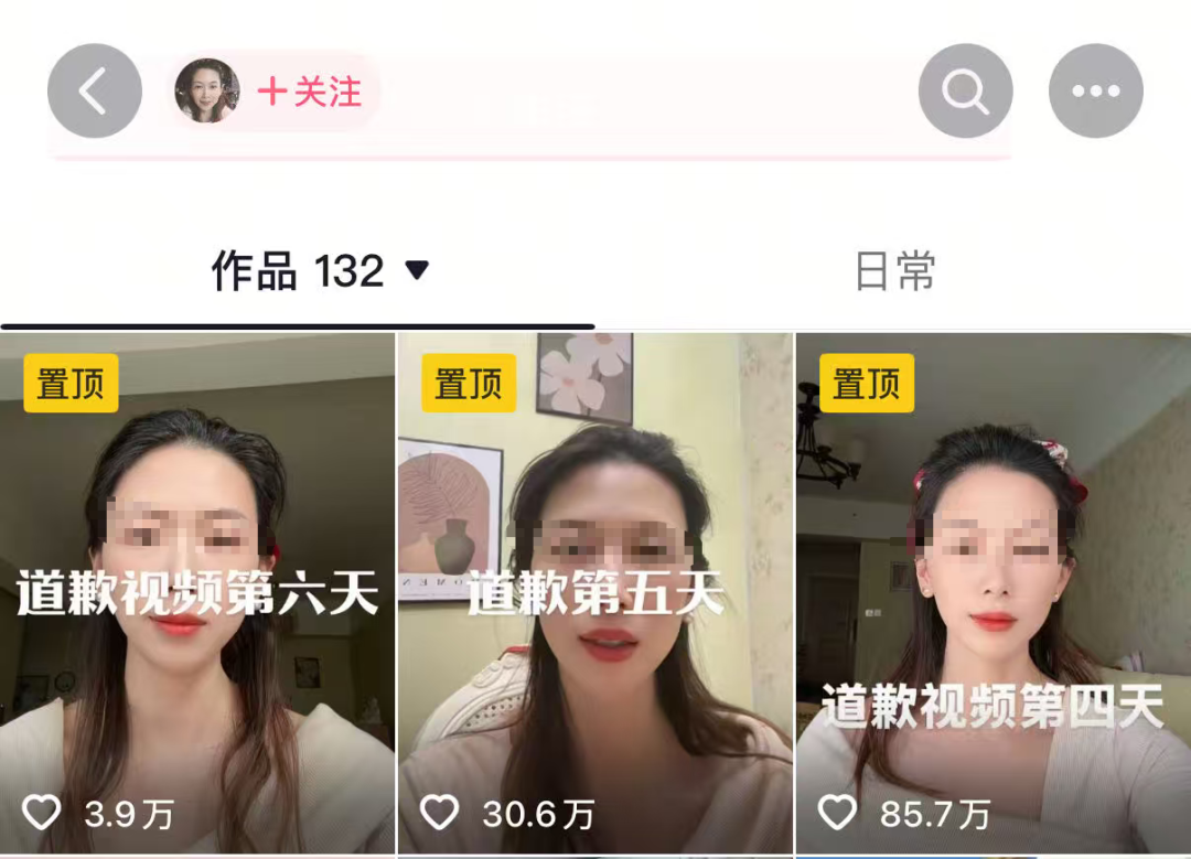 自1月12日发布第一条道歉视频后,目前,牛女士已连续发布了6个道歉视频。截至发稿,第一天的道歉视频已获得超80万赞。